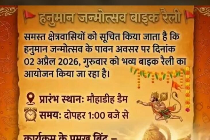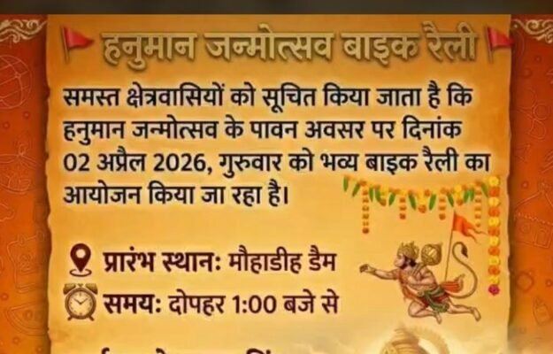 मौहाडीह। हनुमान जन्मोत्सव के पावन अवसर पर 02 अप्रैल 2026, गुरुवार को क्षेत्र में भव्य बाइक रैली का आयोजन किया जा रहा है। इस आयोजन को लेकर क्षेत्र में उत्साह और धार्मिक माहौल देखने को मिल रहा है। आयोजकों के अनुसार, रैली का शुभारंभ दोपहर […]
