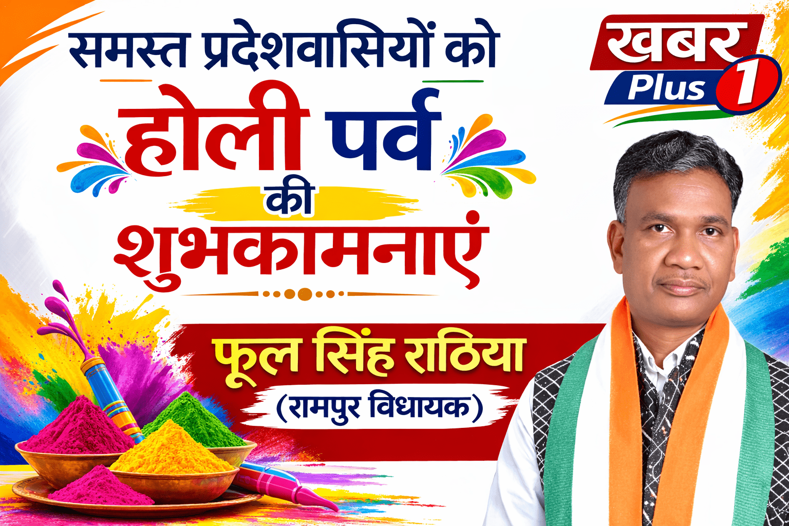 विधायक फूल सिंह राठिया ने कामना की कि यह पावन पर्व सभी के जीवन में खुशहाली, समृद्धि और सुख-शांति लेकर आए। उन्होंने लोगों से सुरक्षित और सौहार्दपूर्ण माहौल में होली मनाने की अपील भी की।