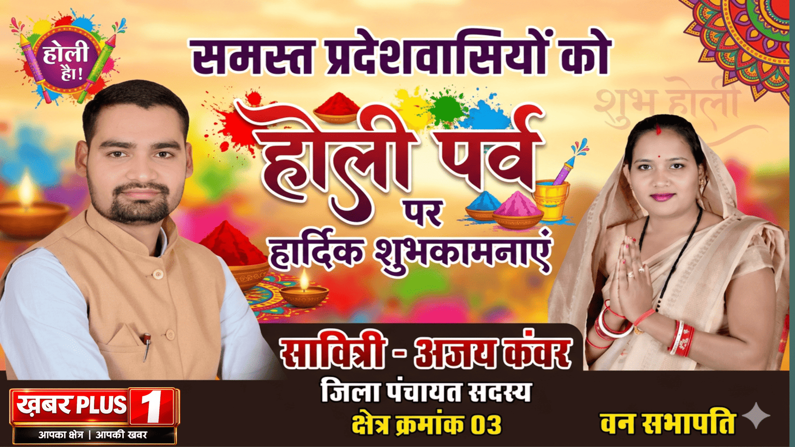 कोरबा – जिला पंचायत सदस्य क्षेत्र क्रमांक 03 एवं वन सभापति सावित्री–अजय कंवर ने होली पर्व के पावन अवसर पर क्षेत्रवासियों सहित समस्त प्रदेशवासियों को हार्दिक बधाई एवं शुभकामनाएं दी हैं।